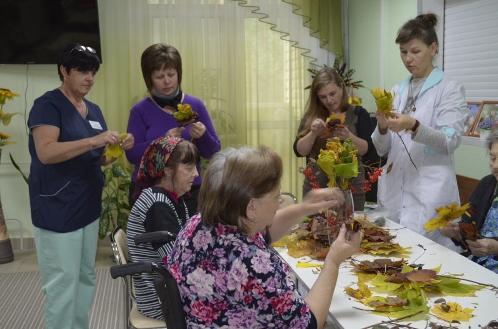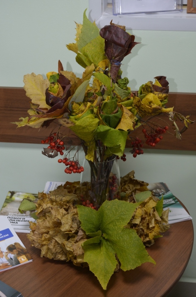 10 октября в хосписе ГБУЗ ЛО "Волховская межрайонная больница", Анна Круглова и Ирина Чернова - сотрудники Пашского Дома культуры провели мастер – класс: цветы своими руками из природного материала «Осенний букет». Пациенты и сотрудники хосписа с большим старанием и удовольствием мастерили розы из листьев клёна. Во время мастер – класса пациенты рассказывали истории из своей жизни, шутили и восхищались красотой получившихся цветов.